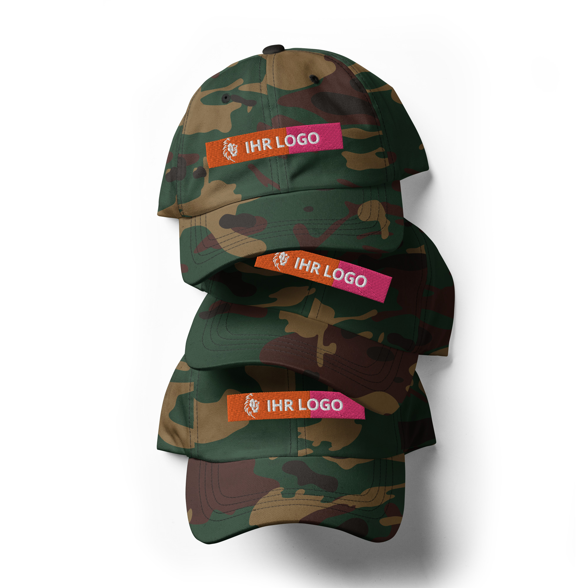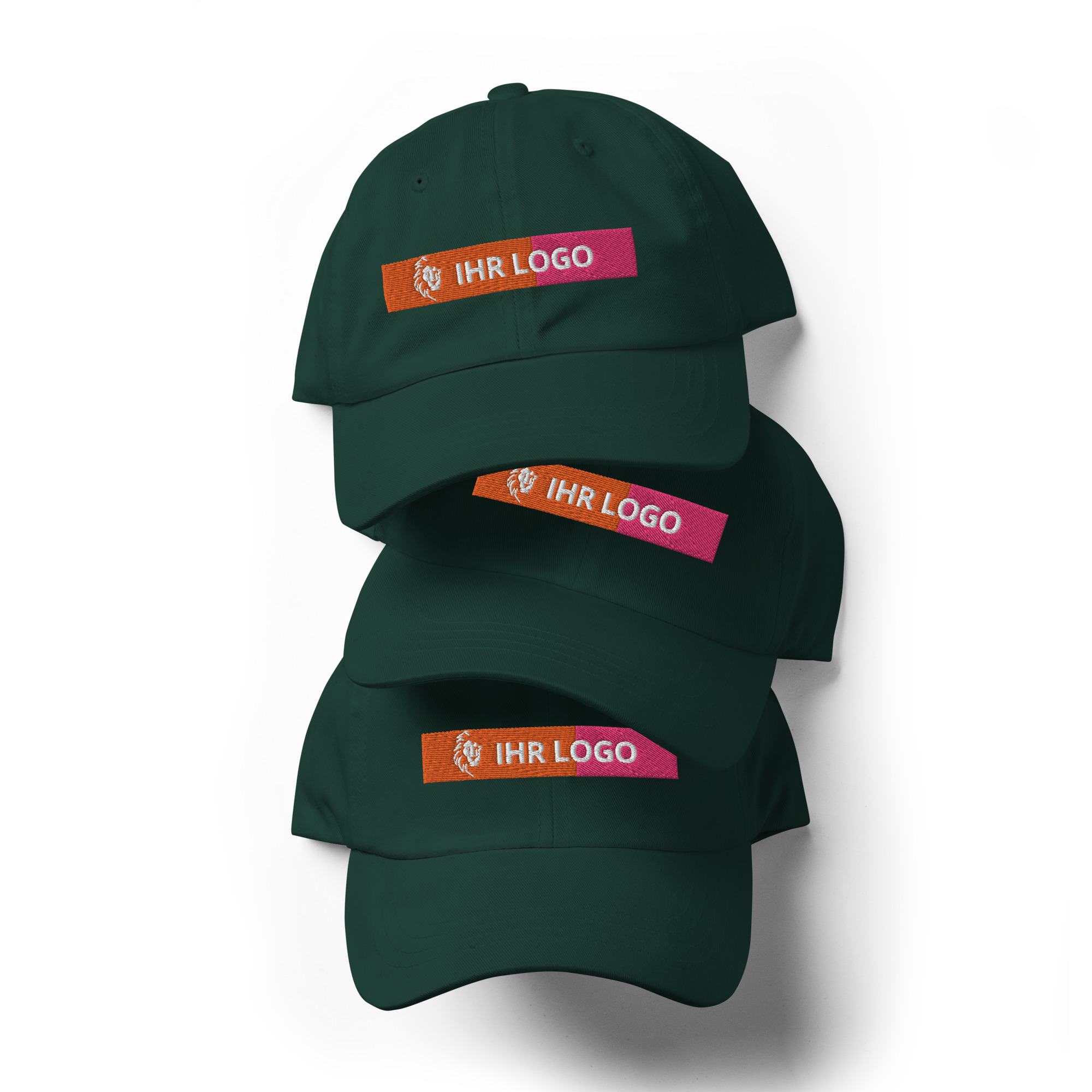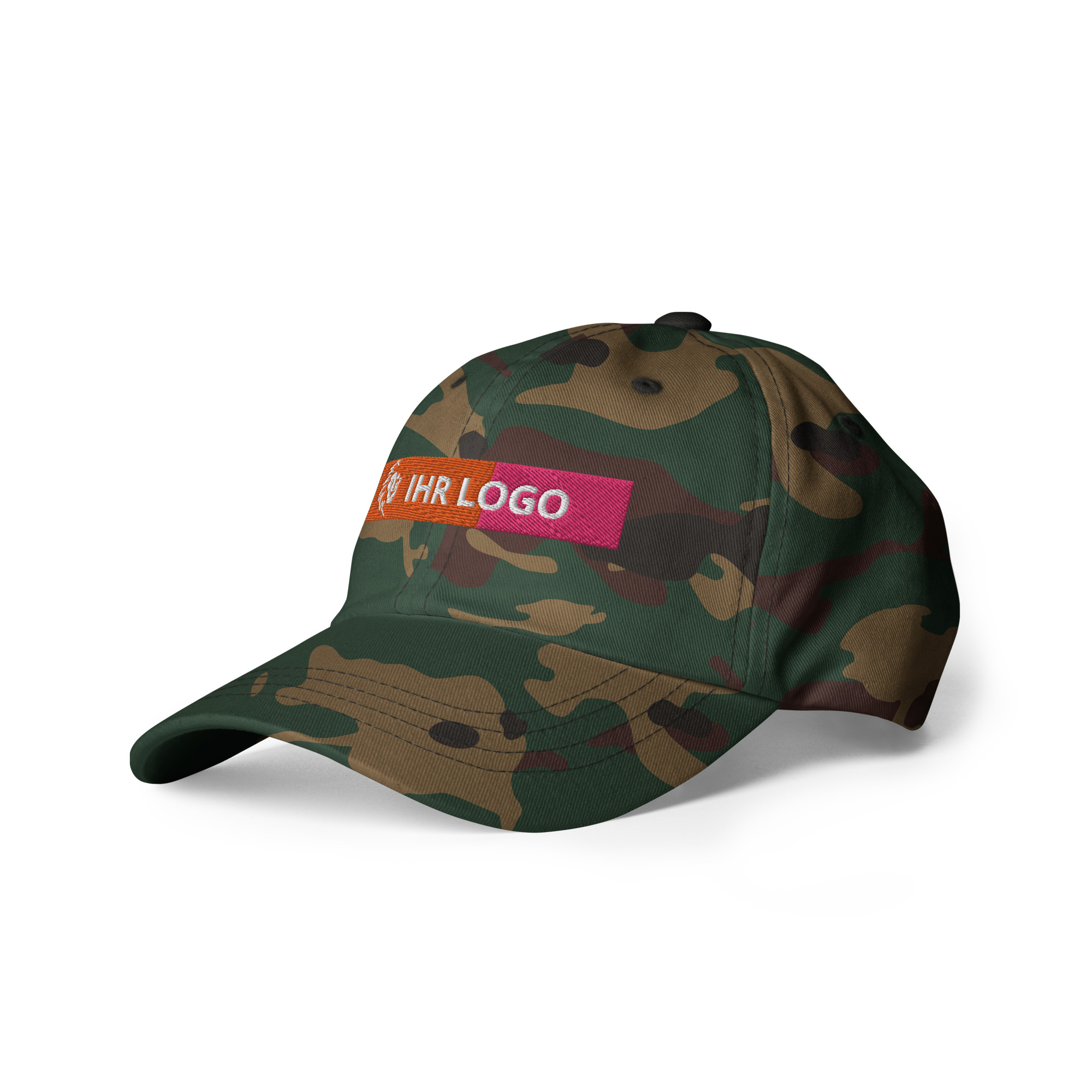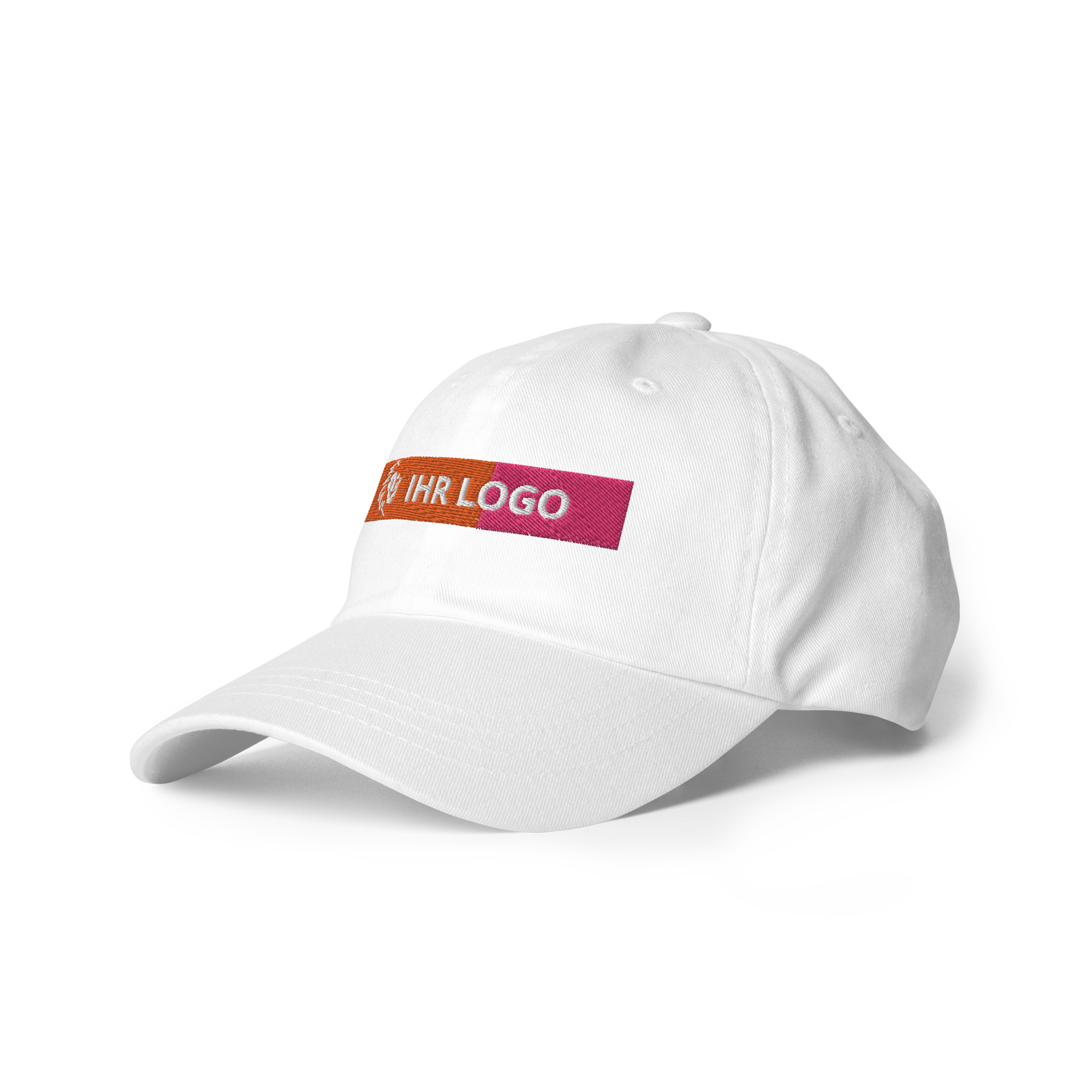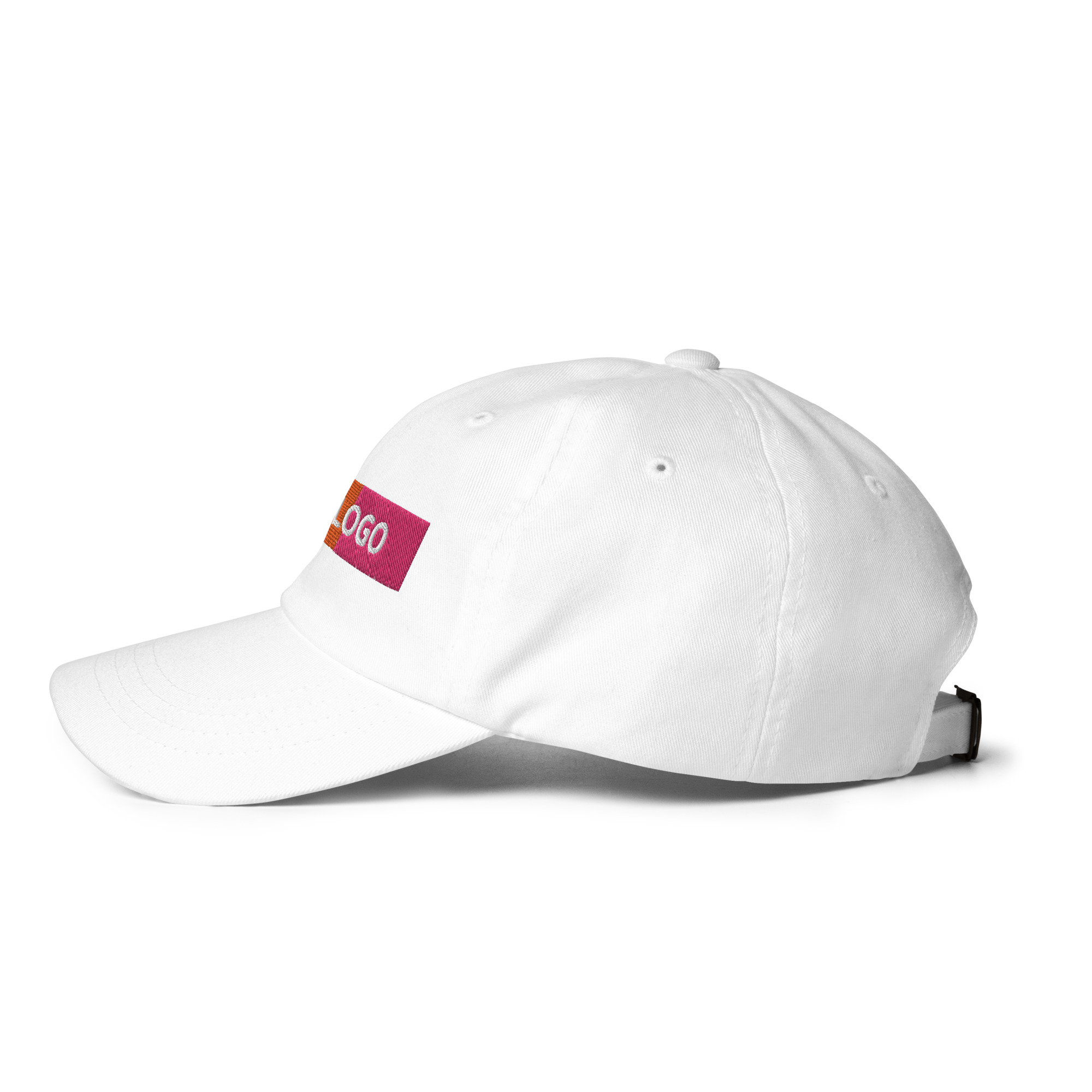 Dad-Hats sind nicht nur für Väter. Dieser hat ein flaches Profil mit verstellbarem Riemen und gebogenem Schirm.